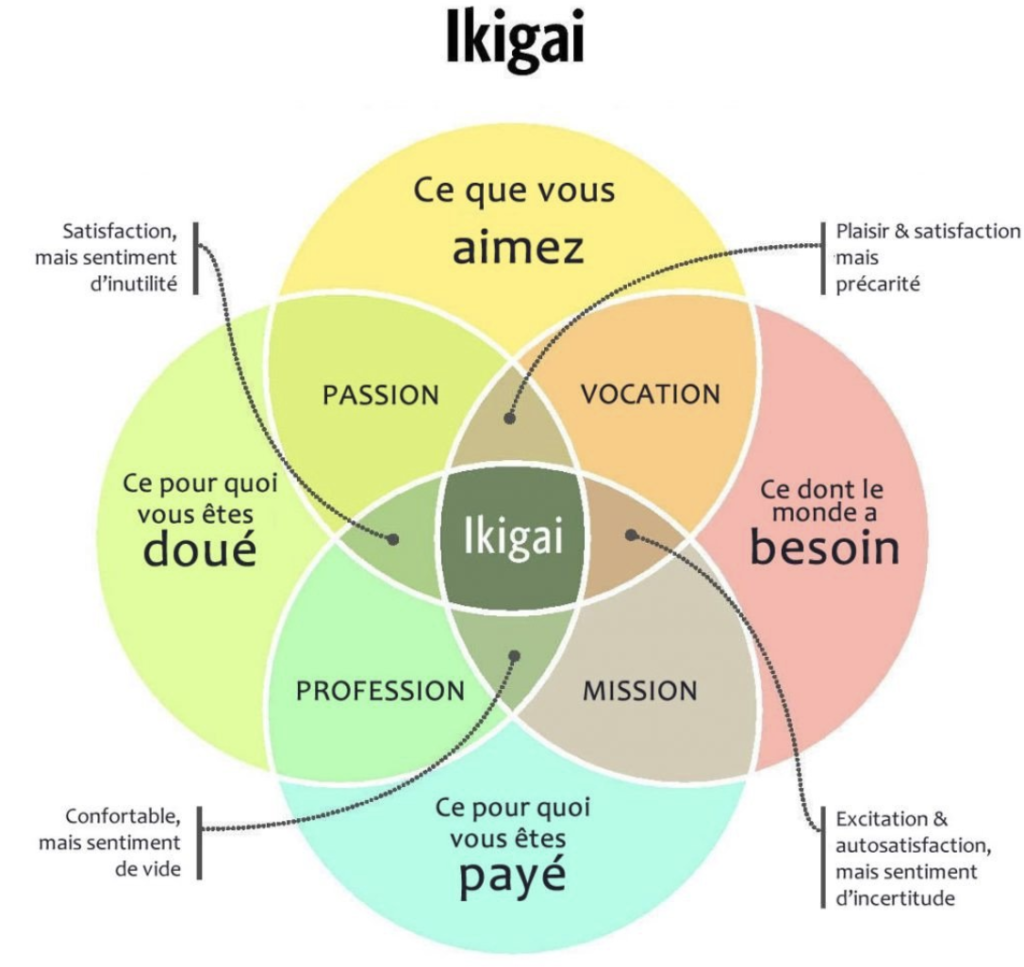 […] fois que tu auras tous ces éléments (qualités, mission de vie…), tu peux te servir de la méthode de l’ikigaï qui te permettra de clarifier tout ça et de trouver ce qui t’importe […]